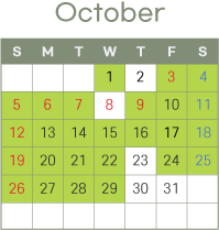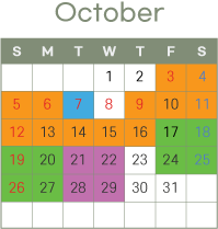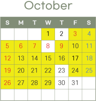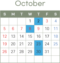 10월 1일, 3일 ~ 7일, 9일 ~ 22일, 24일 ~ 29일
