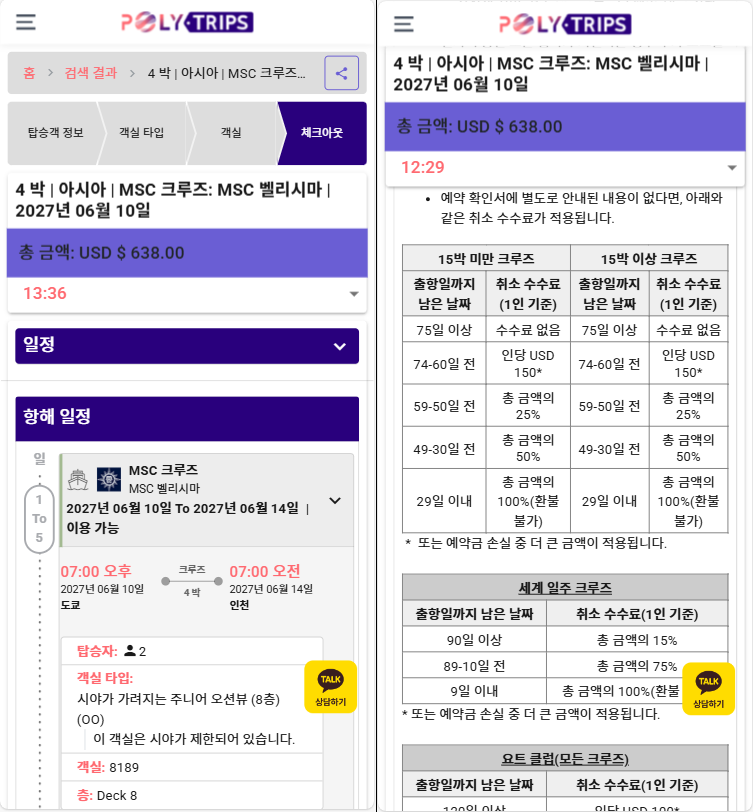 11. MSC 크루즈 선사 예약 확인