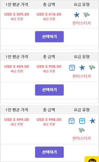 • 아이콘 표시는 같지만 금액이 다른 경우 다른 종류의 프로모션으로 인한 것일 수 있습니다. 더 저렴한 요금을 선택하시면 됩니다.