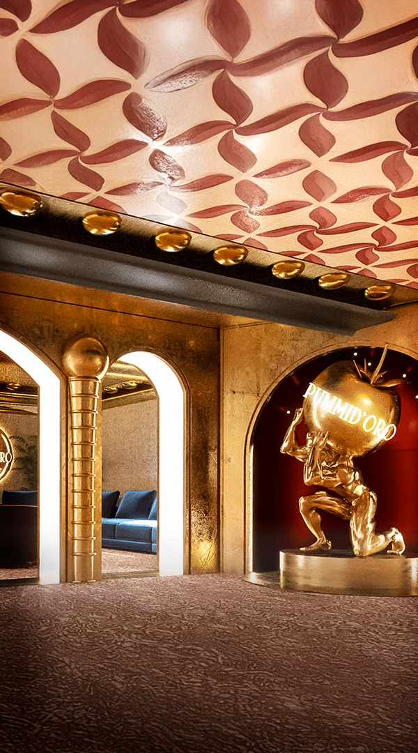 - Pizzeria Pummid’Oro 手工薄餅屋:金色阿特拉斯托舉巨型番茄的藝術裝置成為焦點,正宗義式薄餅香氣四溢。