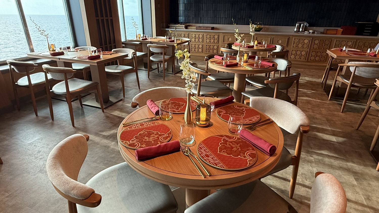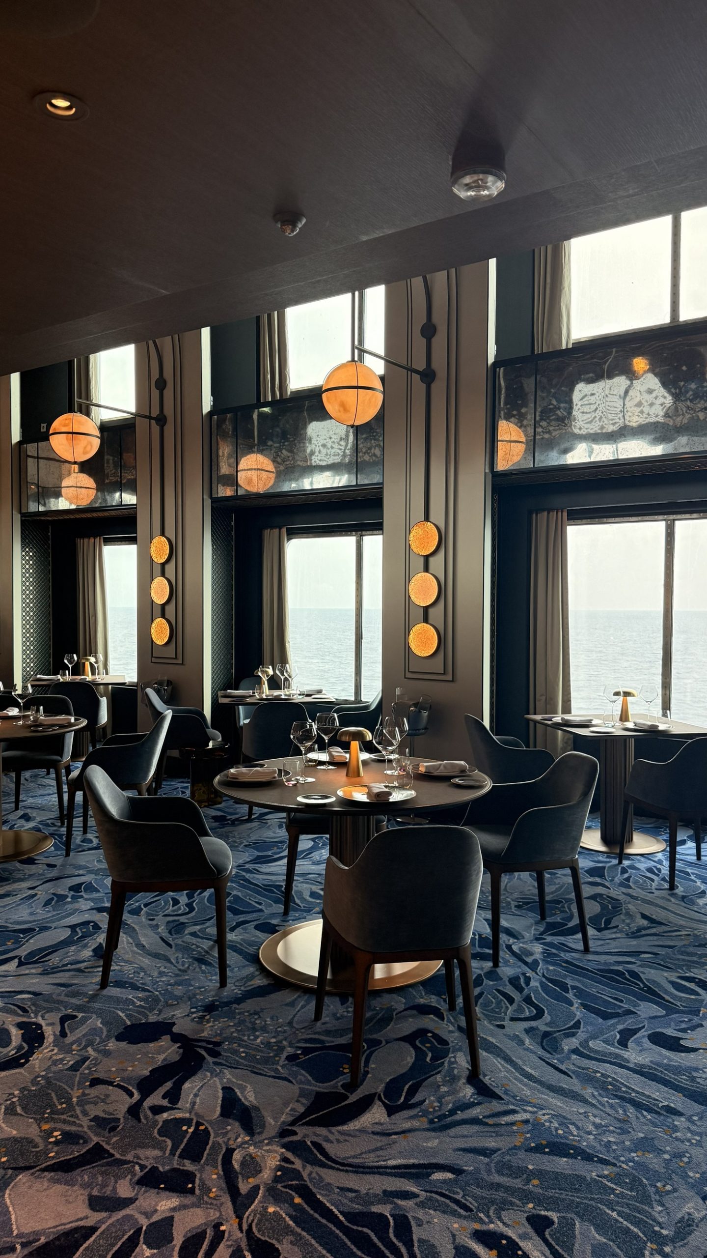 這裡主打地道的北意大利料理,除了晚間提供精緻的位上套餐外,海上巡航日限定的經典早午餐更是全船最難搶的盛宴。官方認證的必吃首推招牌朱古力梳乎厘,搭配現場淋上的雲呢拿與朱古力雙重醬汁。在壯闊的海平線景致與落地窗灑落的夕陽陪伴下,賓客能在此享受遠離喧囂、專屬於成年人的精緻時光。