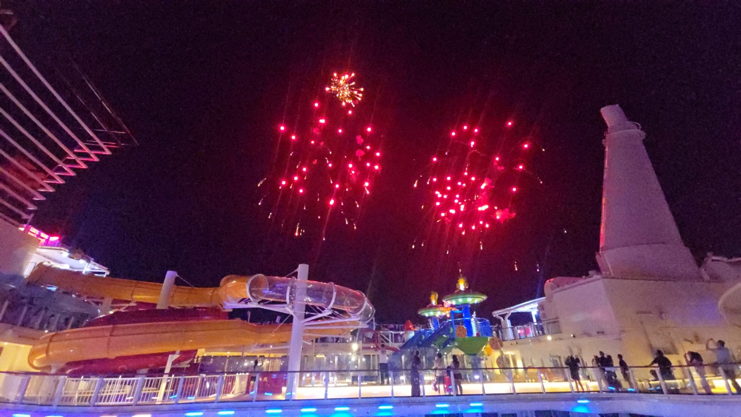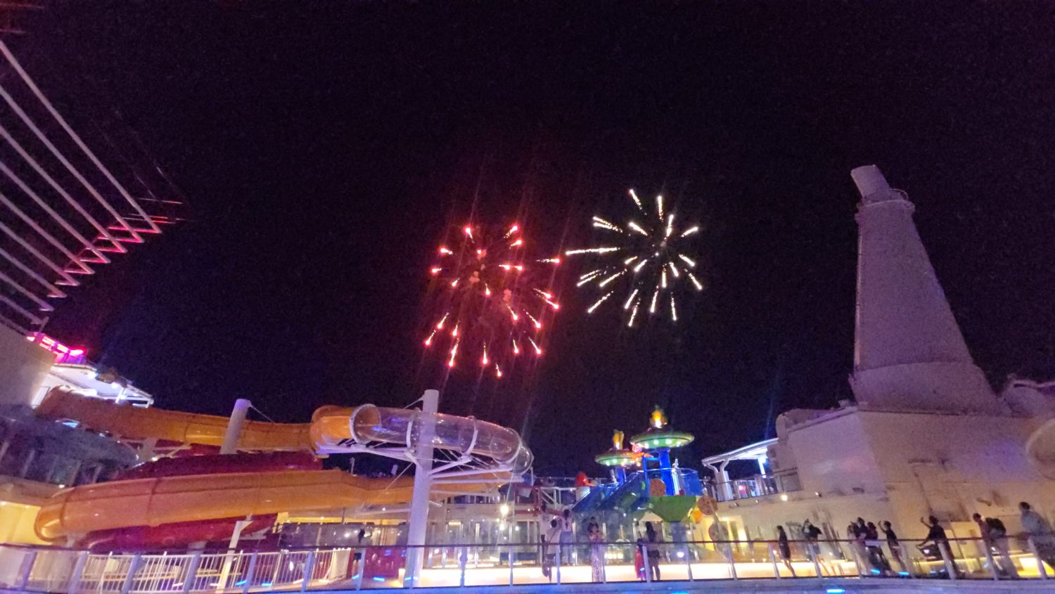 建議前往 Deck 17 泳池前方,視野較開揚,同時能避開部分人潮,是觀賞煙火的理想位置。